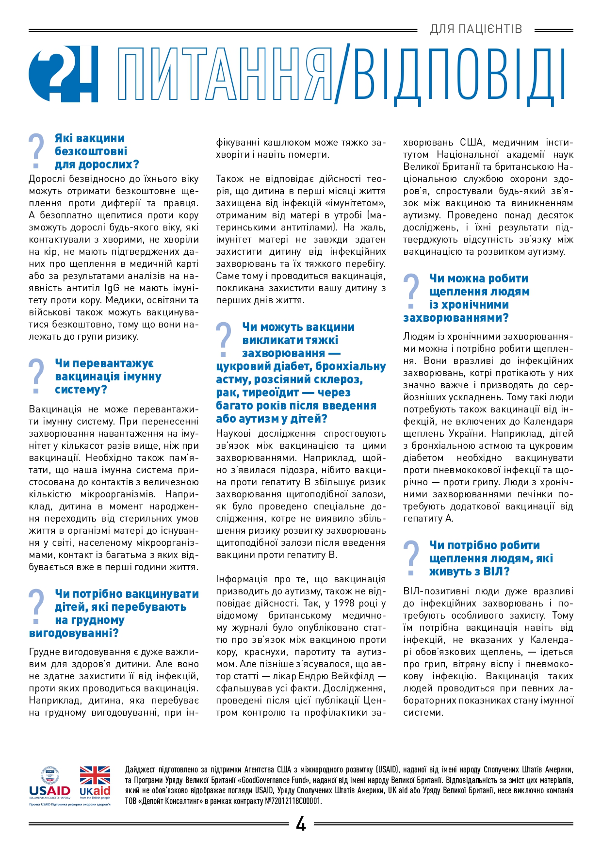 - відповіді на поширені запитання про вакцини та щеплення;