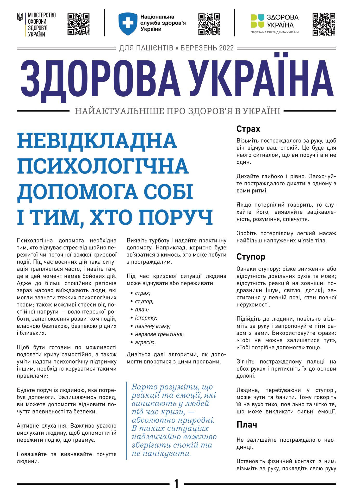 - Безкоштовна психологічна підтримка