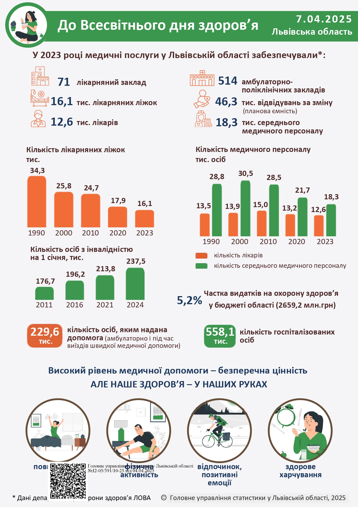 Висловлюємо найтепліші слова вдячності представникам найгуманнішої у світі професії, тим, хто не жаліючи зусиль і часу бере на себе важкий тягар людського болю і страждань, оберігає найцінніше, що є у людини – її життя. Адже здоров'я нації є базовою умовою нормального розвитку країни, її добробут. Прийміть побажання міцного здоров'я і добробуту Вам, Вашим рідним і близьким.